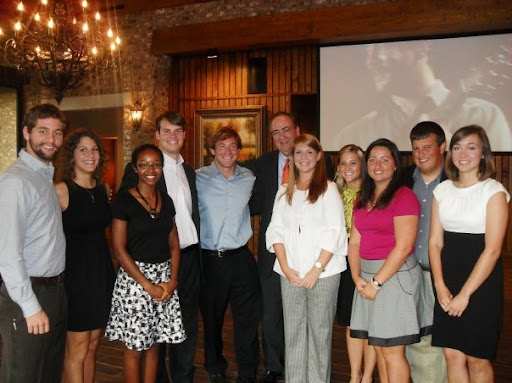 On Tuesday, all of our students and professional staff were invited to the President’s mansion for a Student Leader Recognition Reception. The was the first time many of us have gone to the President’s house and Dr. & Mrs. Gogue hosted the reception in the new outdoor facility. We were the first large group to have been hosted there where was really exciting. Dr. Gogue and the Vice President for Student Affairs each said some words to the group. There were about 60 students there and surprisingly (or maybe not) nearly half of them have been involved as leaders in our office. We got our 10 students together for a picture with Dr. Gogue which they were all very excited about!