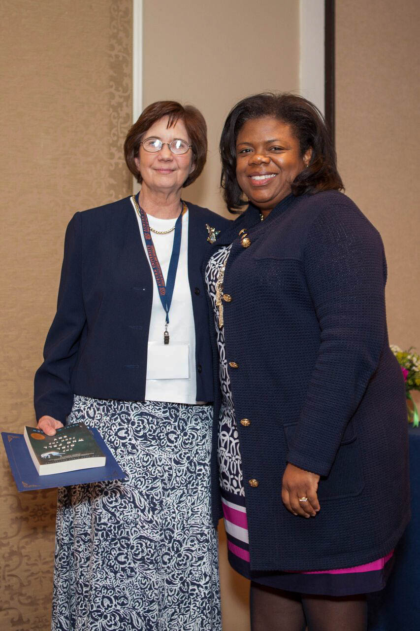 Beverley Childress (left) receives the 2017 Women of Distinction Administrative and Professional Staff Leadership Award from Taffye Clayton, vice president and associate provost of inclusion and diversity.