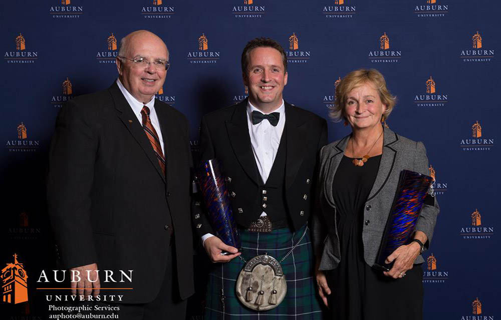 Five faculty members from the College of Sciences and Mathematics were recognized for outstanding academic achievement at the 2014 Faculty Awards ceremony. Debbie Folkerts, assistant professor in the Department of Biological Sciences, and Stuart Loch, associate professor in the Department of Physics received the Gerald and Emily Leischuck Endowed Presidential Awards for Excellence in Teaching. The awards honor two full-time, tenured faculty members who have demonstrated effective and innovative teaching methods and a continuing commitment to student success through advising and mentoring both inside and outside the classroom. Stephen Dobson, professor in the Department of Biological Sciences, received the Research and Creative Scholarship Award while Allen Landers, professor in the Department of Physics, received the Award for Excellence in Faculty Outreach. Peter Johnson, professor in the Department of Mathematics and Statistics, was recognized as a 2014 Alumni Professor, which awards a five-year, non-renewable professorship sponsored by the Auburn Alumni Association. The awards were presented by Provost and Vice President for Academic Affairs Timothy Boosinger and are the highest honors the university gives to faculty. To read more about the 2014 Faculty Award winners, visit the website.