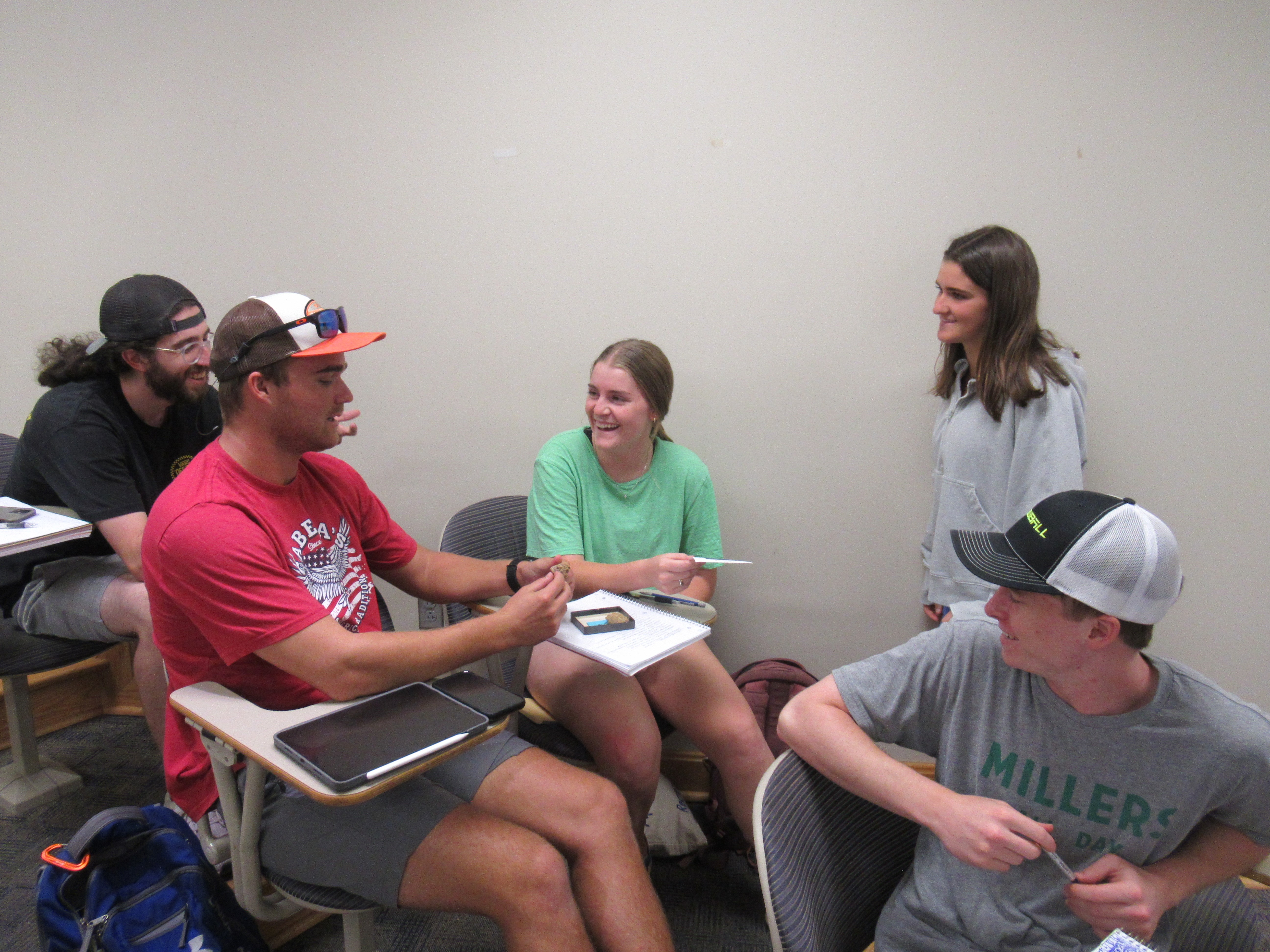 In Dr. Fronimos’ weekly meetings with his LAs, he opens this conversation up and he encourage them to be involved in the activities for the week. During the meetings, he gets suggestions from them about what is going good in the classroom and their feedback helps to shape the activities done in class. Since having LAs in his classes, Dr. Fronimos said that he can tell a difference in the classes where there are LAs. With the LAs, every group is getting someone to check in on them and the students are getting more out of the classroom and learning. He says that the attendance is even higher with the LA involvement, showing that it makes the students want to show up.