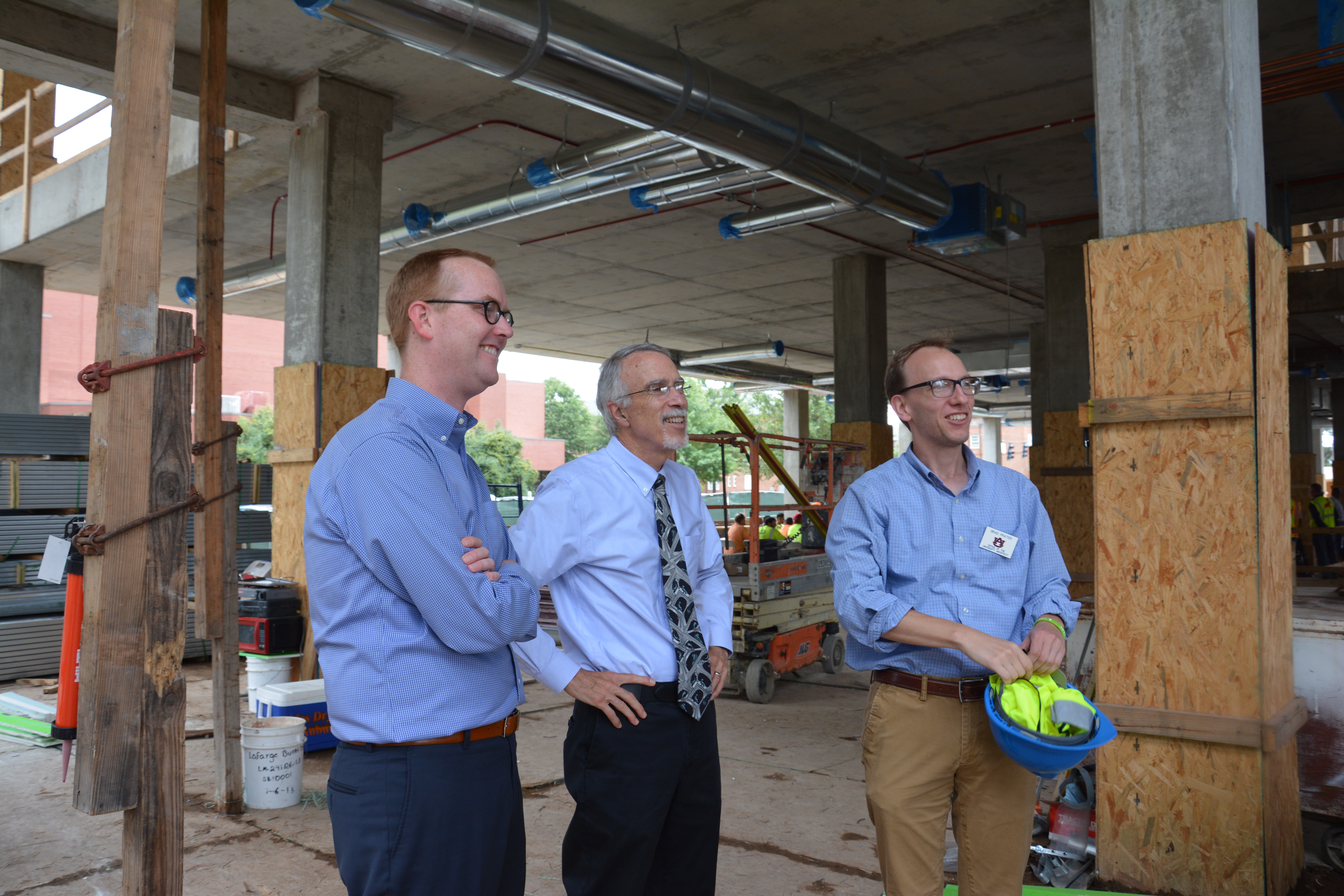 “A degree in physics is a gateway that gives you so many opportunities in life,” said Pierce Jackson, vice president of the Society of Physics Students (SPS). On March 21, students with an interest in physics had an opportunity to connect with faculty, learn about research opportunities and see updates about the New Leach Science Center Addition. “Student Advisor Katie Cooper created this physics social hour where students can easily talk with faculty from the Department of Physics and network with other students,” said Will Pennington, physics major and SPS member. “It really is a great opportunity for us.” In addition to speaking with faculty, students could look at renderings of the new facility and see photos from the latest walk-through. “I am excited the new Leach Science Center Addition is designed for collaboration,” explained Will Bowers, president of SPS. “It will be convenient for students to have a new group study area that also provides us to work together after classes and interact directly with faculty whose offices are right there.” Valerie Green, a volleyball student athlete is looking forward to taking astronomy classes in 2020 in the new facility. “I want to be an astrophysicist and the new Leach Science Center Addition will have a telescope terrace with the chance to study the solar system like never before,” Valerie said. Any student at Auburn University who is interested in physics or astronomy can join SPS. “SPS is a group that offers friendship, support and encouragement to everyone,” shared Will Burdett, SPS member. SPS has no GPA requirement and is free to join. Meetings are held every other Tuesday on campus. Members share an interest in physics and enjoy opportunities to talk about their current class projects, research interests and much more. Students can learn about research opportunities including hands-on experience in labs, annual scholarship opportunities and events for students to participate in educational outreach. “I enjoy learning the fundamental building blocks of physics,” said Lydia Mitchell. Lydia, who is a new member of SPS, highly recommends other students to join. “You can network with other students and have fun with people who have a passion for physics,” Lydia added. Conner Robinson, treasurer of SPS, is thrilled to have a new meeting room in the facility where students will be able to gather. He enjoys the challenge that physics offers. “I am a physics major because I enjoy the chance to solve problems and take on more complex material,” Conner said. Students have options to pursue learning about physics with a double major or minor. “I am interested in a minor in physics to help me succeed in my medical career,” said Khendra Lucas, a Biomedical Sciences major. “Physics can enhance my degree and help any student who wants to become a physician with a long-term advantage.” Any student interest in finding out how to earn a double major or minor in physics should contact COSAM Student Advisor Katie Cooper for more information. Students who would like to be part of SPS can check out the AUInvolve page searching for Society of Physics Students or email sps@auburn.edu. To watch a live webcam of the Leach Science Center and learn more about the project, view the construction webcam page.