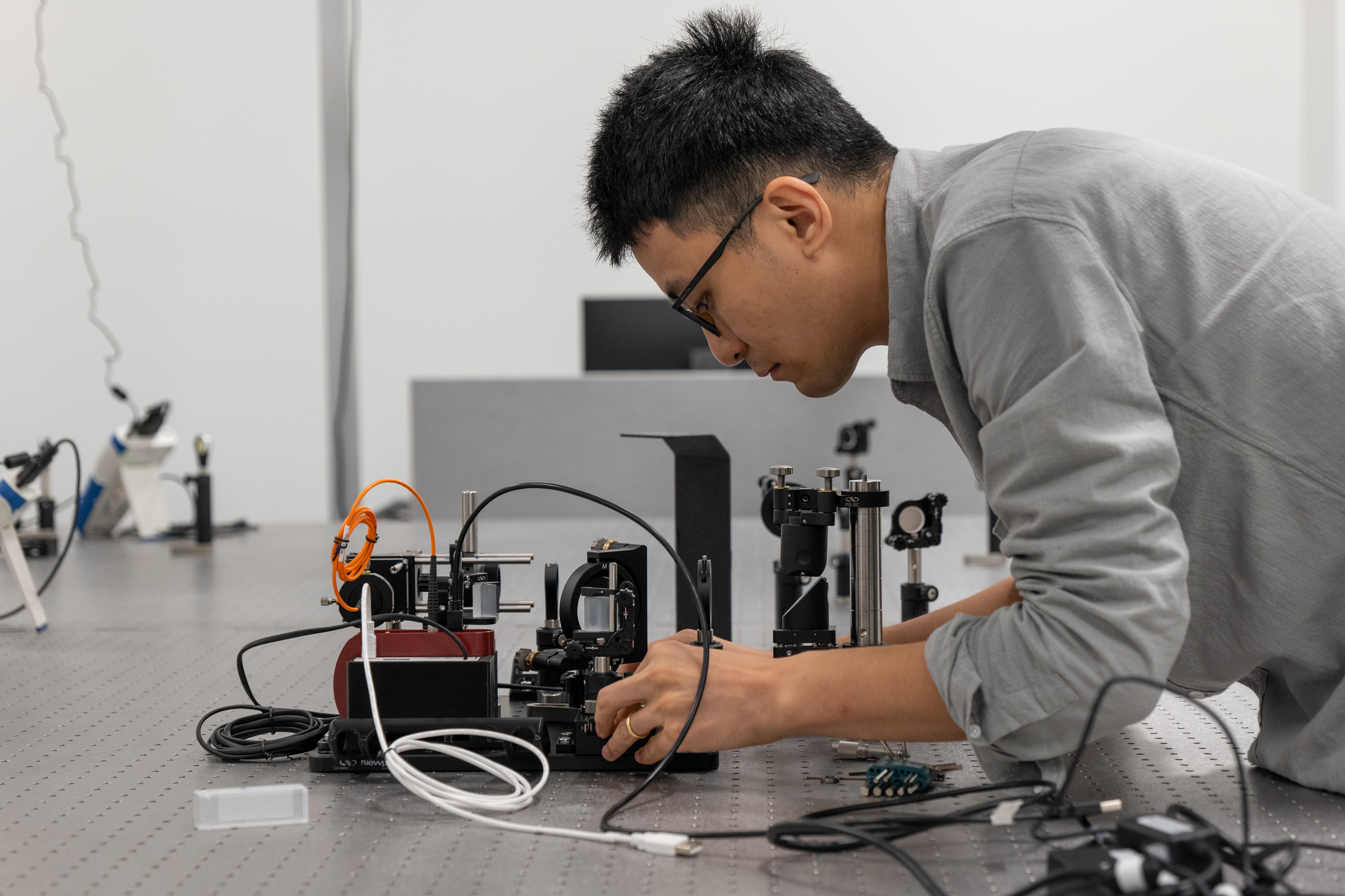 Impactful Instrumentation: Wencan Jin uses his ultrafast laser lab in the Department of Physics to conduct 2D magnetic materials research with a $523,200 National Science Foundation (NSF) award.
