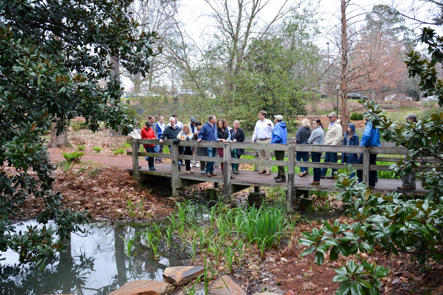 The project represents one of the largest interdepartmental collaborations on campus and includes the Davis Arboretum; College of Sciences and Mathematics; Facilities Management; College of Architecture, Design, and Construction; School of Forestry and Wildlife Sciences; Office of Campus Planning and Space Management; Design Services and Construction Management; Office of Sustainability; Alabama Clean Water Partnership; Alabama Water Watch; the Alabama Cooperative Extension System; Holcombe, Norton and Partners, Inc.; and Landscape Services.