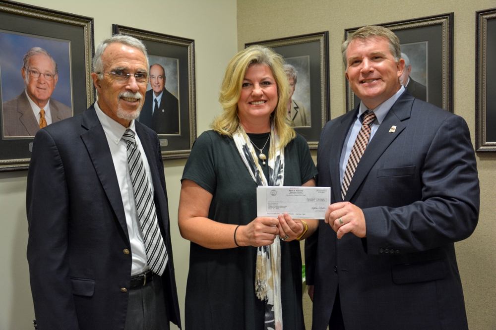 State representative Joe Lovvorn stopped by the Sciences Center Classrooms Building on campus to present a check to Dean Nicholas Giordano and COSAM Director of Outreach Mary Lou Ewald for BEST Robotics. Answering the nation’s need for more and better-prepared workers in scientific, industrial and technological fields, BEST, which stands for “Boosting Engineering, Science and Technology,” is a middle school and high school robotics program, now in its 25th year nationally and 17th year in Alabama. BEST Robotics is the only robotics program in the nation that is offered to schools at no cost. The not-for-profit, all-volunteer program challenges students to design, build and market a robot to use in a six-week-long series of competitions, culminating in the South’s BEST championship, which is hosted by Auburn University’s College of Sciences and Mathematics and the Samuel Ginn College of Engineering.