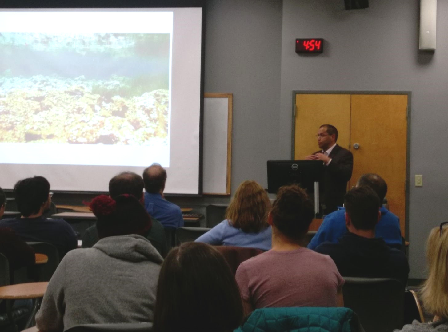 Dr. Scott Santos was recognized as a Distinguished Alumnus on October 18, 2018, by the Department of Biological Sciences at the University at Buffalo in New York. As the current Chair of the Department of Biological Sciences in the College of Sciences and Mathematics (COSAM), Dr. Santos spoke at an invited seminar entitled “Islands in the Sea: Population endemism, genomic biology and physiological ecology in tropical ecosystems.”