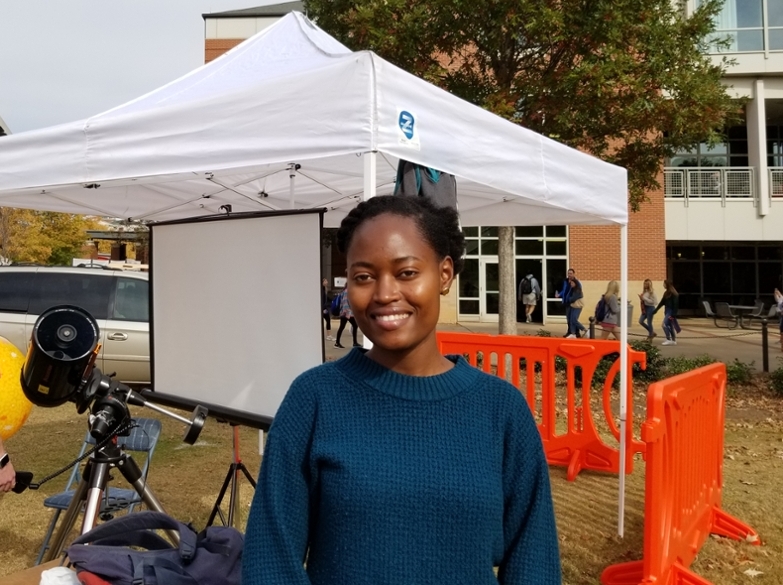 Doctoral students in chemistry, Yvette Kayirangwa, had to stop by the event. She took physics in high school and loves celestial events.