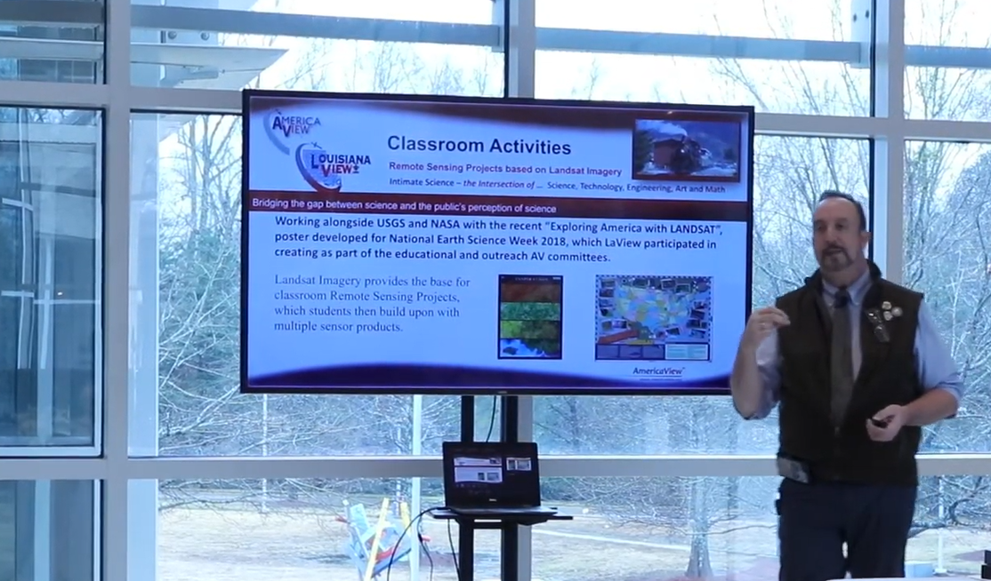 For the opening of the exhibit, the Department of Geosciences invited Brent Yantis, a geography faculty from the University of Louisiana at Lafayette and the chair of ‘AmericaView’, to hold a lecture on the importance of remote sensing (satellite images) and the ability to connect this technology with the artistic world to encourage the general public to take an interest in remote sensing technology. Yantis has traveled various places within US with similar exhibits in hopes to spark interest on using remote sensing to showcase our beautiful Earth. The Department of Geosciences would like to thank Yantis for taking the time to speak at the JCSM of Fine Art in Auburn.