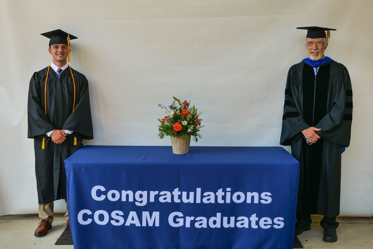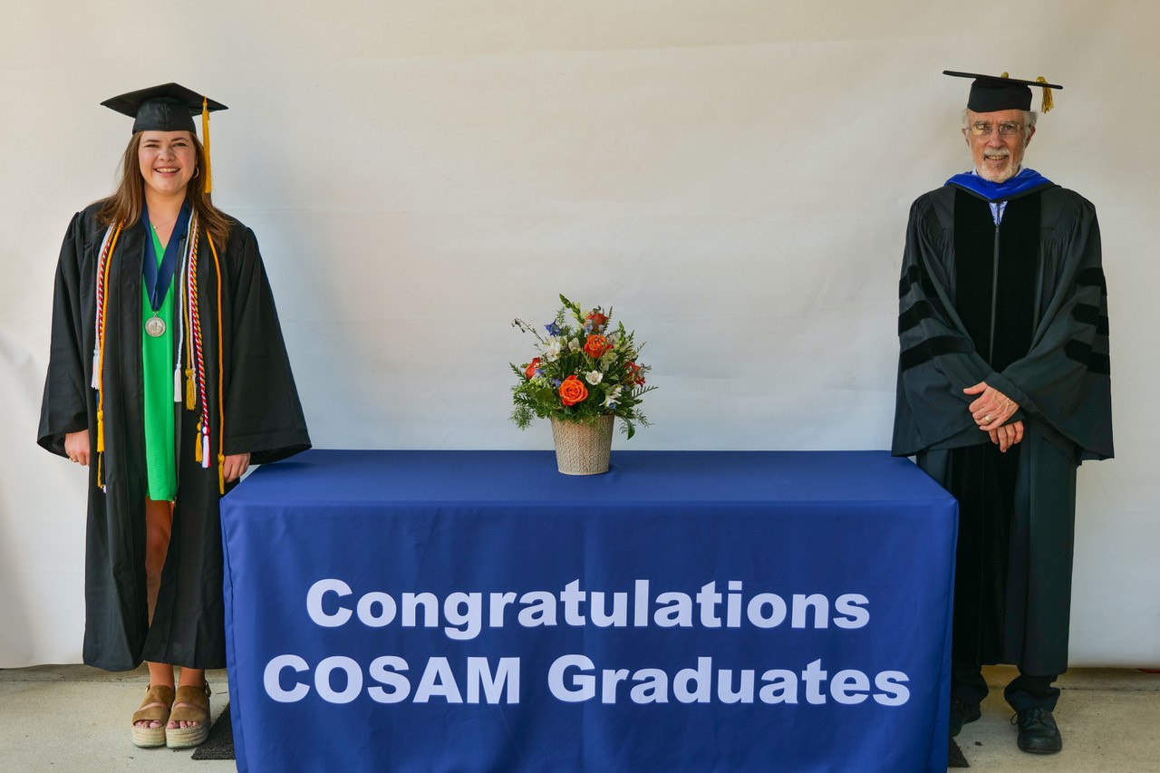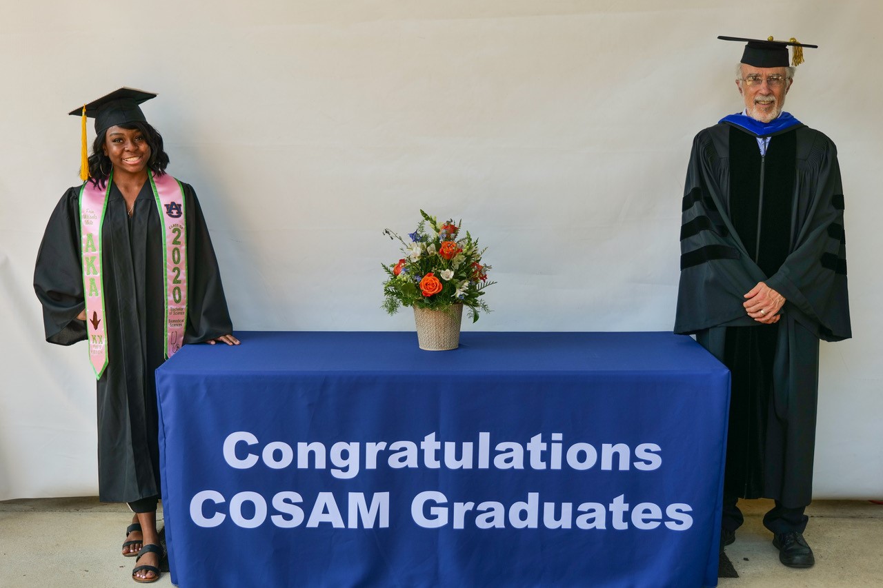 More than 50 graduates from the Spring and Summer 2020 semester for the College of Sciences and Mathematics (COSAM) and 220 of their families attended the event on Saturday, August 9. Students had an opportunity to take photos with Dean Giordano outside of the Sciences Center Auditorium with proper social distancing since the university’s commencement was postponed.