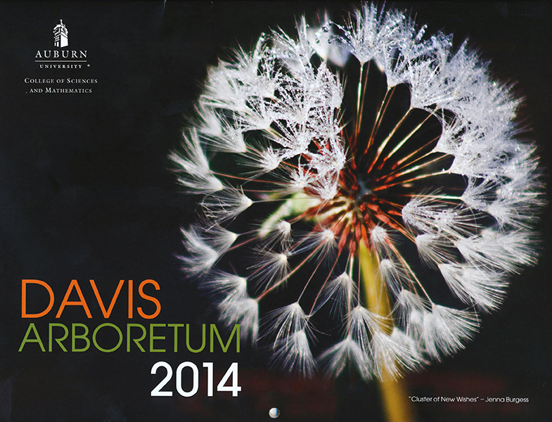 The 2014 Donald E. Davis Arboretum calendars are now available for purchase. Calendars are $7 at the Auburn University Bookstore and $5 through the Davis Arboretum. The calendar features award-winning images from the 2013 Davis Arboretum photo contest. To purchase a calendar through the Davis Arboretum, call 334.844.5770 or send an email to arbinfo@auburn.edu.