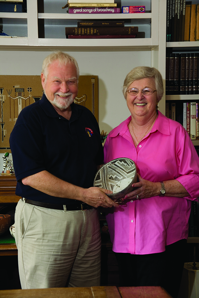 Bill is originally from Andalusia and Gerrie grew up in Luverne, Ala. They have three grown children, Anne, Amy and William, and five grandchildren, Jay, Ellie, Cass, Cooper and Neva. The couple resides in north Shelby County in Birmingham, and they attend Canterbury United Methodist Church where Gerrie started a group called the “Knit Wits,” a prayer shawl ministry. In addition to knitting, she enjoys needlework, reading, travel, and spending time with their children and grandchildren". reading and needlepoint. Both are involved in Bible study groups and enjoy their enormous collection of Navajo art that is displayed throughout their home. Bill’s hobbies include growing camellias, gardening, reading, studying, traveling, collecting Indian artifacts, collecting antiques and collecting art paintings. He also enjoys studying architecture and designing buildings and building additions.