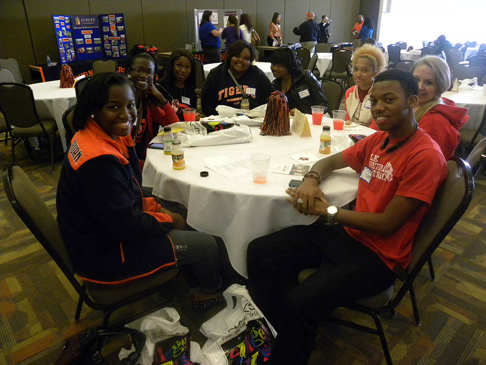 The COSAM annual Minority High School Visitation Day was held Oct. 18, in the Auburn Student Center ballroom. Publicized as a capstone event for college-bound junior and senior high school students, the 2013 event attracted many enthusiastic students, parents and guardians, and high school counselors. The event received an “outstanding rating” from students, parents and participating Auburn University staff. High schools represented included Auburn, Opelika, Loachapoka, Daphne, LAMP, Oak Mountain, Jefferson County International Baccalaureate and Robert E. Lee, and counselors representing several Georgia schools. Nearly 100 individuals registered on site. Registrants included local presenters, and guests and visitors from 20 high schools in Alabama and Georgia. Of those surveyed, 83 perecent said they are applying to Auburn University. Assistant vice president for Student Affairs, Kimberly Frazier, extended greetings, and COSAM associate dean of academic affairs, Vincenzo Cammarata, extended a welcome on behalf of the college. Campus-based representatives included administrators, faculty advisors and student representatives. Students and staff were also available to answer questions and interact with potential students. Overall, the execution of this year’s event was highly successful. Eighty-three percent of students surveyed indicated they had already applied or are currently applying to Auburn University. The event received a rating of 3.9 on a 4.0 scale, which reflects the outstanding rating on the part of the attendees. Four categories received the highest ratings: positive experience; information was helpful; admissions information; and scholarship information.