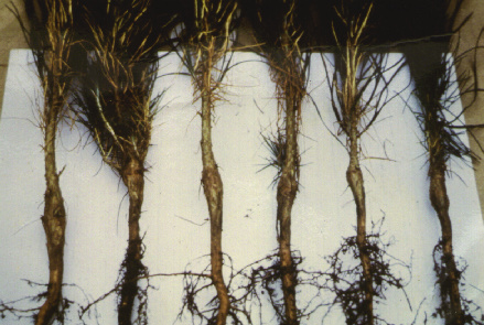 | 2 | Many Pythium spp. | All pines | a, b, c (occasionally), d, e (succulent root tissue) |