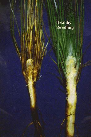 5 affects radicle and roots early; foliage thereafter; spread rapid after canopy closes.