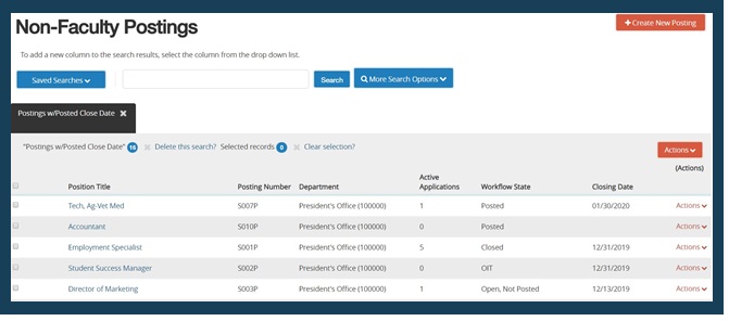 Create from Posting: This option will allow users to duplicate an existing posting. Keep in mind there will be no existing entries if the position has not been in the system previously.