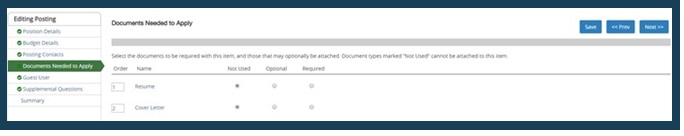 On the page labeled Posting Documents, users may add any documents related to the posting or position (this is not required).