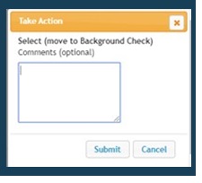 2. On the selected application, hover over the Take Action On Job Application button and choose the appropriate application status.