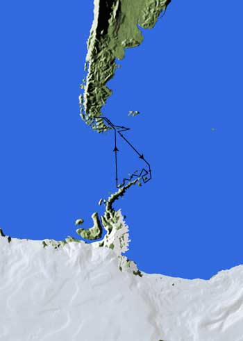 The black line shows our planned cruise track from Punta Arenas Chile to the Antarctic and back. | ||