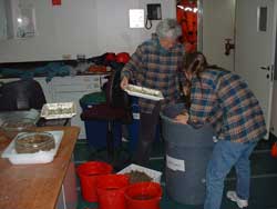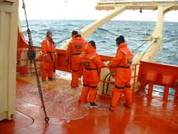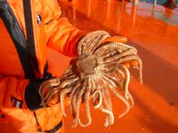 The southernmost continent of Antarctica is the fifth largest continent and the coldest and driest place on earth. Antarctica separated from the southern tip of the South American continent approximately 30 million years ago and has been isolated since. During this time, many of the marine animals living around Antarctica have evolved and are now different than any other animals in the world. These endemic animals are unique to Antarctica and include worms, molluscs, echinoderms, crustaceans and many others. However, some of the animals are able to live in both Antarctic and South American waters. This research effort is looking at how the larval forms of some marine animals move between Antarctica and South America. By using plankton nets, we will look for larvae actually moving across the Drake Passage - one of the roughest bodies of water in the world. Because larvae are so small and the Drake Passage is so big, this will be like looking for a needle in a haystack. However, we have found larvae in the Drake Passage on previous cruises in 2000 and 2001. Once we get back home, we will use genetic (DNA) tools on larvae and adults collected in Antarctica and South America to determine if animals in both locations are closely related. The best explanation for how these areas stay closely related is that larvae, not the adults, move long distances. In order to collect adults to investigate their DNA, we will use several different pieces of equipment to sample the shallow sea floors around the tip of South America and around Antarctica, at depths up to around 200 meters (around 600 feet). To collect the larvae forms, we will use plankton nets in the much deeper waters of the Drake Passage to capture the larvae as they travel across from one continent to the other. After collecting these animals, they will be identified on the boat based on their outward appearance, or morphology. We will then preserve the animals in a deep freezer so that we can study their DNA back in the laboratory. The DNA of larvae will also be used as a way to identify them since they are so tiny and very difficult to identify based on outward appearances, so we can match up the DNA from the larvae to the DNA from the adults and figure out which larvae belong to each adult animal. |