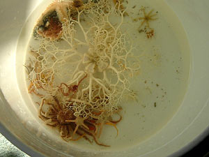 Albatross glide over the boiling sea with the grace and ease of a glider plane, depending almost wholly on the wind’s play off the waves. Their tapered wings, sometimes measuring 10 feet tip to tip, barely move, and I haven’t yet seen one resting on the water. 1st plankton tow of the cruise was taken around 7am in 8-foot seas! (Doesn't sound like much, but that, my friends, means a 16-foot trough and a rocky ride!) I could hear a bridge-to-deck radio conversation regarding what was going on on deck and the concern for safety of personnel was impressive. The plankton net was let out on 50 meters of wire, which means it went about 30 meters deep while the ship cruised very slowly. The net brought back a greenish-brown slurry, which means, dun-dun-daaaaahn, phytoplankton (plants)!! We want zooplankton (critters) for our study, and so the challenge began. The lab became immediately active with people looking through the mucky samples under microscopes. Success! There were a few lovely specimens of the critters we needed, and they were carefully pulled from the petri dishes using small pipettes, and put into chilled salt water for later identification and “pickling”. The 2nd tow, this time to scrape the ocean bottom (benthic), occurred around noon. Think of it the bottom of cold Antarctic waters doesn't seem like a very inviting place to live, right? Well, I was amazed at the array of sealife specimens that came up with this net! The sorting of 4 buckets of samples in the lab turned up sea cucumbers, keyhole limpets and many sea anemones with long, thick tentacles among them, and starfish by the dozens! Most of these represented an array of brittle stars, and a couple of delicate white basket stars were outstanding. Many different worms were identified, such as “featherduster” worms, and also tiny purple clams, live sponges, and one tiny (about 2 inches long) cuttlefish. This process of tow, sorting and documenting alone took about 4 hours. The tow schedule is what is driving the cruise at present, but there will be time to allow the salp (a type of jellyfish) group to do some SCUBA dive sampling along the way, weather permitting. It is hoped that the first of these will be tonight (not in the dark - it stays light until 10:30pm!!) as the seas have calmed some. |