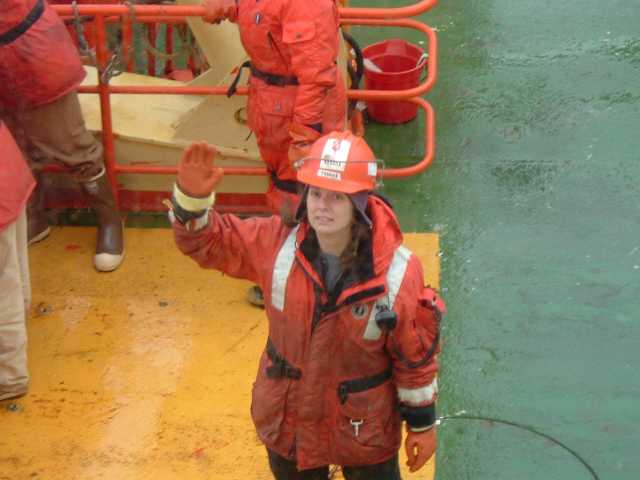 We’re heading west again, and will turn south when we’re just below Staten Island (Isla de los Estados). We are in Argentine waters, and so the flag of Argentina is highest on our mainmast. (Do you know whose flag flies highest when we get close to Antarctica?) Ship’s Personnel: Jamie is one of the Marine Technician’s (MT’s) on LMG, and an able young woman she is! Jamie is most evident on the main deck when equipment is being deployed over the side on the big mechanical rig called the “A-frame”. MT’s wear walkie-talkies on their shoulders, and talk to the Bridge (person at the helm of the ship) to keep them informed of details of the equipment positioning process. Jamie was once a commercial fisherman in Alaska, but interestingly enough, she is from Nebraska (I think she just like places that end in “a”?). So you can see, Jamie has come a long way to be crew on a ship to Antarctica practically from one pole of the world to the other. When Jamie communicates with the person running the hydraulics (the lifting and lowering rig or A-frame) from a small control room in the starboard mid-ship area, she uses hand signals rather than saying, “A little up, a little down, now to the right,…”. Here are a few of those signals: 1) Make a soft fist and point your pointer finger up. Now make little circles with your finger. Voila!! You’ve just told the person at the Controls to bring the wire up (it rolls onto a giant spool). Point down and do the same thing, and the wire goes down; 2) Now keep the fist, knuckles up, and then hold up your thumb and pointer finger and put them apart and together like little pinchers, and you’ve said, “up slowly, a little at a time”. You can figure, then, how to say “down slowly”; 3) Make a fist, hold it up about head-height and move it in and out and stop sharply - that means “Stop!”; 4) Last lesson: Hold your hand open, fingers pointing up and palm forward, about head-height and without turning your wrist, ‘wave’ sideways. If you emphasize the direction away from you, you’ve told the Control Room to move the A-frame out over the water. If you do the reverse, the A-frame comes in. Now Jamie has to watch out for her job, because you know what she knows! Anyway, I’m very impressed with this woman and the responsibility her job holds. The Catch of the Day goes to the Salps Lab group. On their dive today, a beautiful pteropod was captured in one of their dive jars, “eye candy” for all to see. A pteropod is a type of shell-less, "winged" snail that lives in the water column (a free floatin’ dude, neither at the top nor at the bottom of the ocean). This particular one was about an inch in diameter, and of the warmest, most velvety maroon (or a fine Chilean merlot) color! [See Image 2 - Brown Pteropod] Its “wings” move in tiny, rhythmic S-curves to propel it through the water as it feeds and mingles with the rest of the column community. We are mostly doing plankton tows now, on a regular schedule of every 4 hours. Our main assignment is to find certain larvae amidst the masses of copepods. There are snails and clams and barnacles that to the naked eye are just specks in the water. Our great challenge is to find and catch the “oddball” treasures in the magnified fluid as it sloshes in and out of the microscope’s lens range. Oh yeah. It’s fun for me to see tiny, not-quite-microscopic squid larvae. |