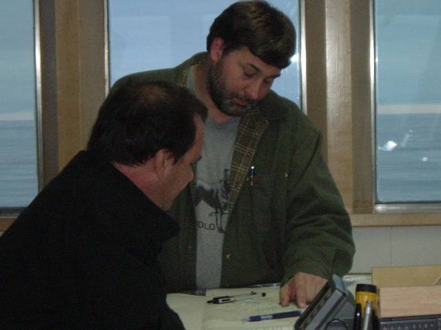 | The cycle du jour continues (with minor shuffling here and there), in the usual order of: CTD measurements, Tucker Trawls, Dive Ops, Plankton Tows, Smith-MacIntyre grabs, and Blake or Benthic Sled Trawls. One leads the decision as to how to approach the next. | Photo1![]() |