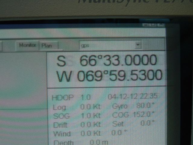 | Dec. 13, 2004 --- Position Lat/Long: S 66° 33.0000 W069° 59.5300 [Wind: NNE 6-8kn / Air Temp: -1.6C /Depth: 443m / Seas 1-2ft / Boat Speed: 0.2k SOG] | ||||||||||||||||||||||||||||||||||||||||||||||