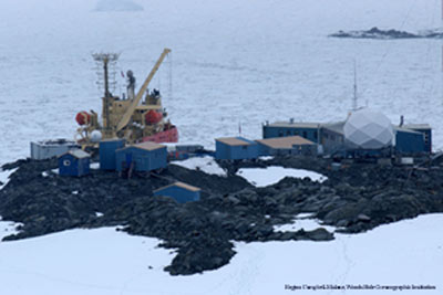 | Palmer Station (U.S.) on Anvers Island We arrived at the long-anticipated Palmer Station at the SSW corner of Anvers Island around 7:30 a.m., tied up (it takes about a ½ hour!) and had breakfast on board before a 9 a.m. meeting with the Station Manager, sent to initiate us to the station. | Photo1![]() |