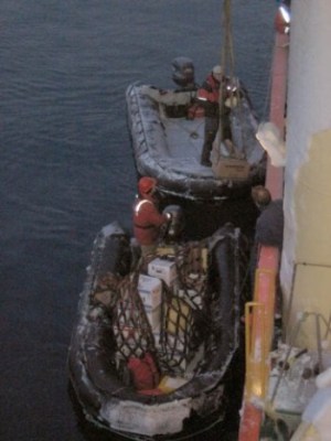 Loading supplies for Canadian boat and crew. [Photo by Cpt. Martin Galster]