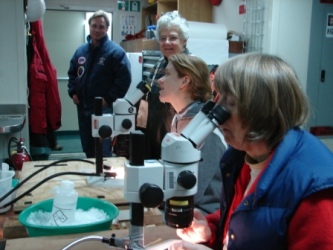 Dan calls McCarthy, Alaska home, and is building a cabin in a setting of breathtaking wilderness there in the southeast corner of the state. He received his undergraduate degree in engineering physics from Cornell University. During his time at Cornell, Dan participated in the annual race car building (and racing) competition, generating much of the electronic aspect of the machine. He also took summer jobs related to electronics and instrumentation to pursue his growing interests. Somewhere during spring break of his senior year, the time when most college grads are getting around to deciding which direction to take next, he was inspired by an older brother, an wilderness travel instructor. They were on a road trip from Montana to Alaska, during which they took a flying tour of Denali National Park (where Mt. McKinley is although the people native to Alaska call the mountain Denali as well, and look to a permanent name change by the rest of us, eventually; politics, don’t you know). Looking over the glacial landscape, Dan and Andy discussed Dan’s possibilities of parleying what might have been an office-oriented job/career into one studying glaciers and traveling to interesting sites to do so. Next stop, U. Alaska Fairbanks, where he earned his PhD in Geophysics. One aspect of his thesis involved a study of the Siple Dome glacial rise on the West Antarctic Ice Sheet. For that, instruments were devised to determine the downward flow of the ice making up that geological interest. The trap was set, baited, and SNAP!! It’s not so much the study of glaciers that drives Dan’s passions, as it is making or working on the devices that measure and feed back the data. So now Raytheon has Dan as one of the ship’s electronics technicians. Although my requests of him are the more mundane (how do I map a drive to my PC and please show me how to shrink photos using this software, etc.), it is clear to me that those with more technical electronics-related queries (like the XBT launcher and data receiver or challenges in getting important photo microscope images properly recorded) are duly pleased with Dan’s knowledge and ever pleasant manner. Mrs. Elsberg, you did a nice job with this boy. And Dan, you did a nice job with your educational path. We’re lucky to have you here, too.