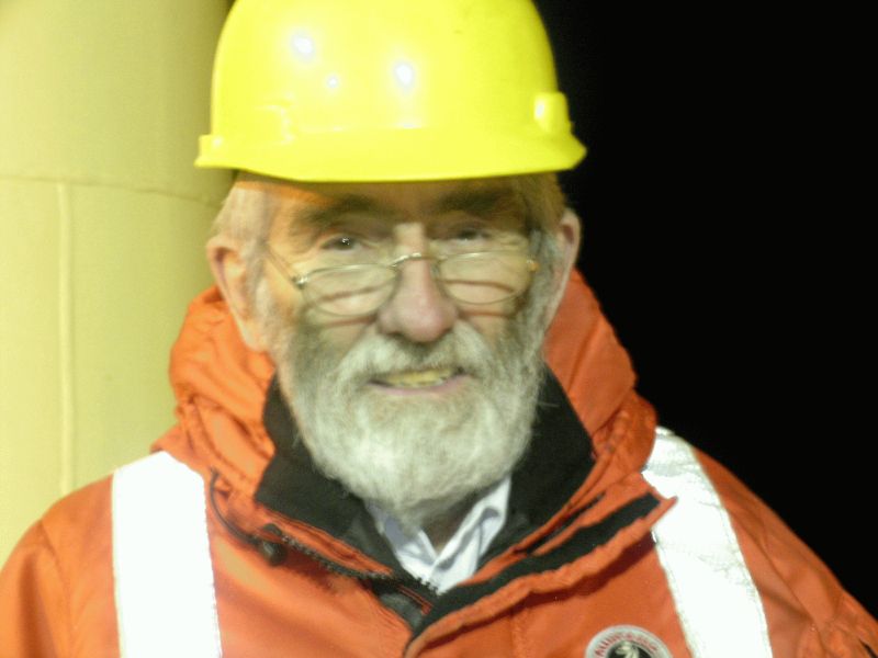 Rudi Scheltema out on deck for the Last Plankton Tow of the cruise. [Photo by Ellen Bailey]