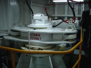 The Rudder system impressed me the most. It was one large room with two huge white hydraulic units, with parts of the shiny, oiled shaft showing on the two great opposing arms of each. Every so often one or the other of these would shift to a bit longer one side, shorter on the other, then back moving the great steel rudders you could only imagine were there, splayed out below our feet in the cold blue sea. There was a monster wrench on the wall that turns the nut on the top of these units, and it takes 2 men to lift it.