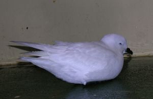 A snow petrel takes a snooze by the Wet Lab door. [Photo by E. Bailey]