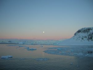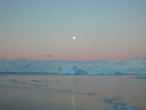 Moonrise over Neumayer Strait. [Photo by Ellen Bailey]