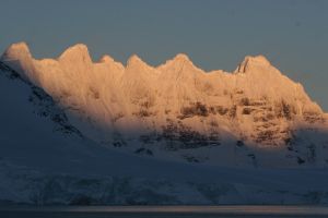 We hit the lottery again on this glorious day for navigating the beautiful waters and scenery of the Neumayer Strait on our way to the Gerlache Channel. The Neumayer is fjord-like in its being a narrow channel with the landmass rising nearly straight up on either side. The high walls with their ice and snow are breathtaking. Everyone was out on deck taking advantage of the light and sights allowed us in these most fortunate passage conditions. You would appreciate the character and beauty of each peak and glacier, both glare dark brown rock and blue, blue ice in every frame. “Stark beauty” personified. The channel was also strewn with icebergs of every imaginable shape. They didn’t create much of a problem for navigating today, as the water is deep throughout and the mate could ‘snake’ around them.