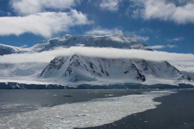 Last night we had a nice stop over at Palmer Stations. After taking on 11 additional passengers and 5 cargo vans, we are turning north to Punta Arenas. One of the passengers, Allyson Comstock, is a fellow Auburn University faculty member. She is participating in a National Science Foundation (NSF) program that brings artists to the Antarctic and promotes art inspired by science. As we are leaving Antarctica, we are getting a few last reminders about the Antarctic. Yet again, ice was making itself known as winds and currents pushed more ice to Palmer Station. We got out, but it was thick ice for the area given it is mid-December. Another reminder was the shear beauty and majestic nature of the landscape. We went through the Neumayer Passage with sizable snow covered mountains rising on either side, blue sky above, and light clouds hovering halfway up the mountains (see above image). We saw several cruise ships on the way out. “People on those ships paid thousands of dollars to do this, but I am getting paid to do it!,” I chuckled to myself.