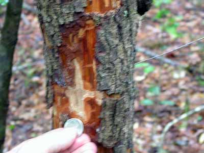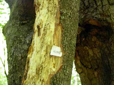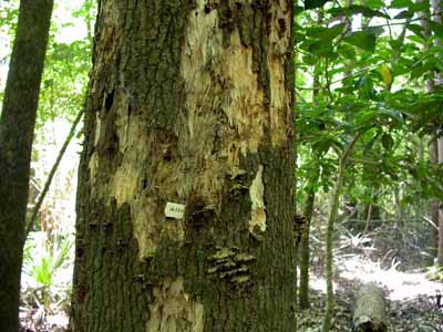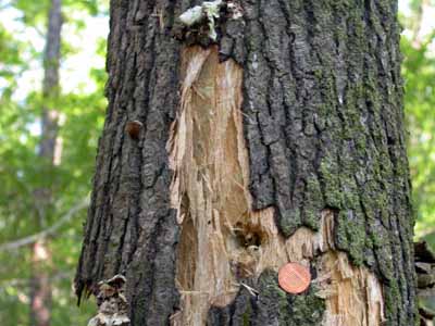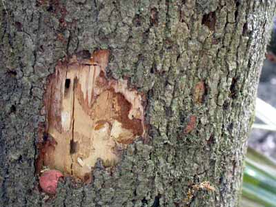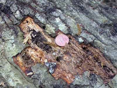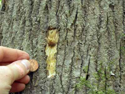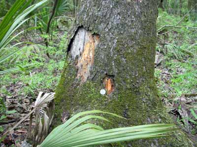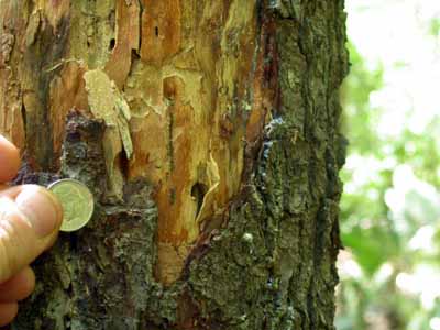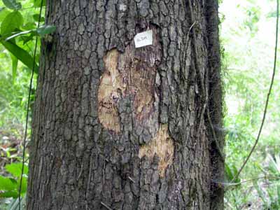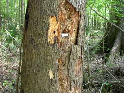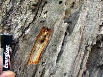 holes of beetles. Spruce pine and sweet gum seemed to be the tree