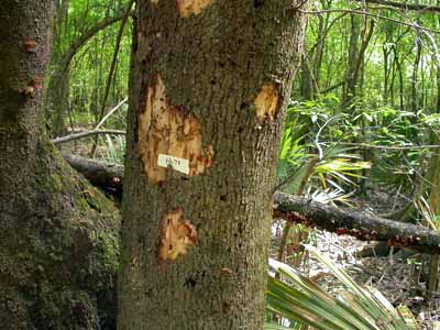the scaled bark that we observe on trees along the Choctawhatchee River