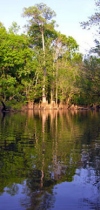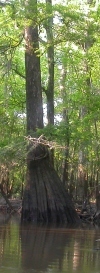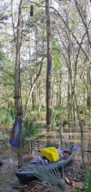 2. Sound detections - Click here to learn about acoustic encounters with sounds that match historical descriptions of ivory-billed woodpeckers. 3. Recordings - Click here to learn about our audio recordings of putative kents and double knocks 4. Cavities - Click here to learn about the large cavities we measured. 5. Feeding sign - Click here to learn about our measurements of feeding sign. In addition, you can take a pictorial tour of the choctawhatchee river. The evidence that we present for the persistence of ivorybills in this forest was collected in a small search area approximately one mile wide and two miles long (two square miles or 500 hectares). Mature swamp forest covers approximately 60 square miles in the Choctawhatchee River Basin, so we were working in only a tiny portion of available habitat. We believe that our study area was smaller than the home range of a single ivorybill pair. A detailed account of our study is published in Hill et al. 2006, published in the online journal Avian Conservation and Ecology. |