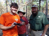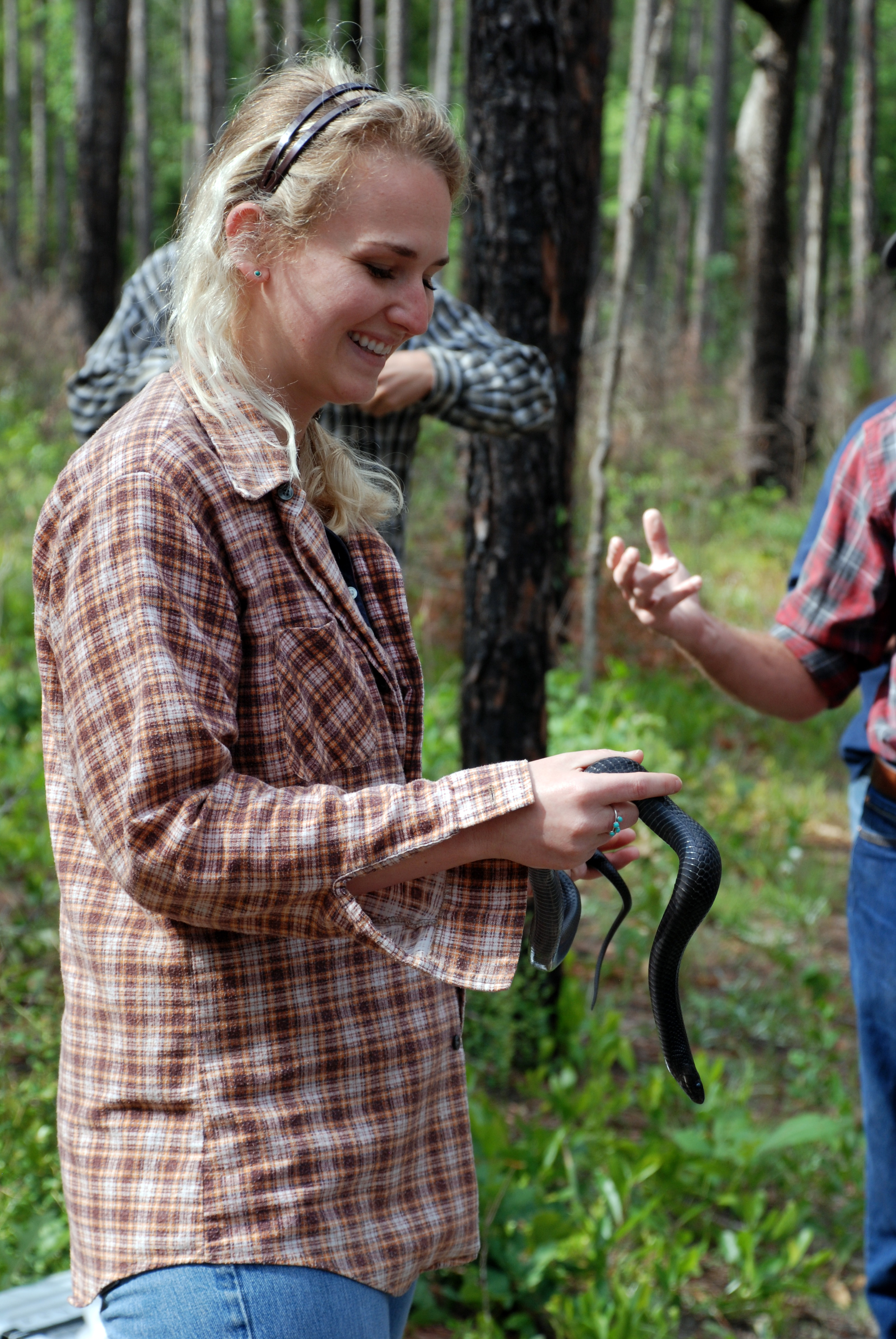 The work at Auburn University is supported by numerous contributing agencies including Alabama Department of Conservation, The Orianne Society, U.S. Fish and Wildlife Service, Georgia Department of Natural Resources, U.S. Forest Service, and Zoo Atlanta. Representatives from these agencies were present at the release, as was the Auburn University Society for Conservation Biology, or SCB. SCB is a student organization dedicated to promoting the scientific study of the phenomena that affect the maintenance, loss and restoration of biological diversity. Last year, students from the organization helped prepare the natural-but-enclosed snake pens and were on hand for the 2011 release. Early indications from last year's release reveal some success as two female eastern indigo snakes were found with eggs.