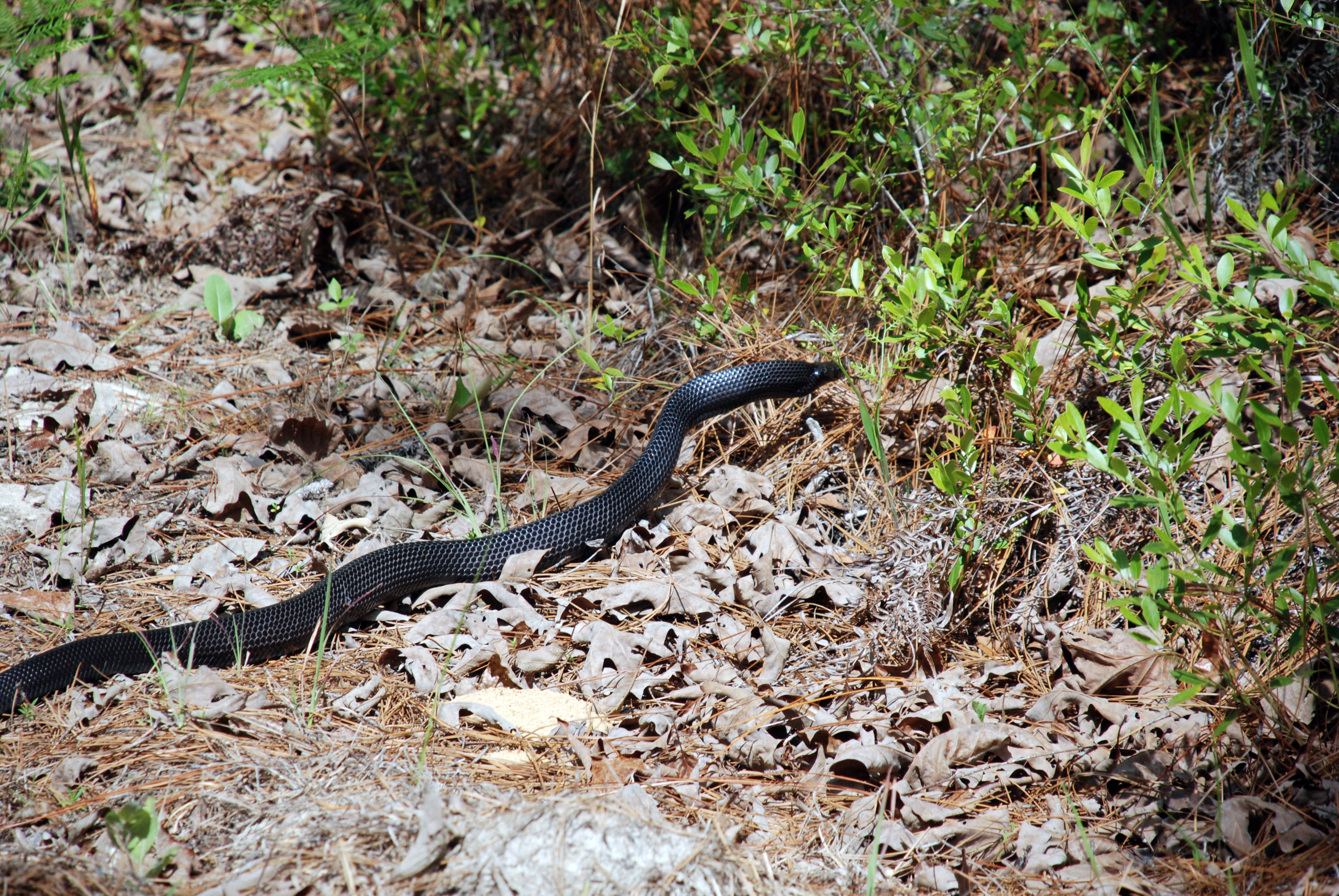 The largest snake in the U.S., the eastern indigo may once again have a thriving presence in extreme south Alabama thanks to a collaborative effort between Auburn University and various agencies interested in the preservation of this threatened species. A glossy bluish-black snake with lighter, almost reddish coloring around the chin, throat and sides of the face, adult eastern indigos can often reach lengths in excess of eight feet long. The non-venomous eastern indigo is native to Alabama; however, there have been no verified sightings of the snake since the 1950s. Currently the eastern indigo can only be found in parts of Florida and southern Georgia. Classified in 1978 by the U.S. Fish and Wildlife Service as a threatened species, this large, rare snake is thought to be extirpated from Alabama. Disappearance of the eastern indigo is a result of a variety of factors including a dwindling of their natural habitat, changes in forest types and tree harvest cycles, a decrease in the use of fire as a forest-management tool, collectors selling the snakes in the pet trade, and road death.