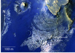 “The presence of calcite is significant because calcite is a marine and/or aqueous deposit, which is rare to find on cold, dry Mars,” Wright said.