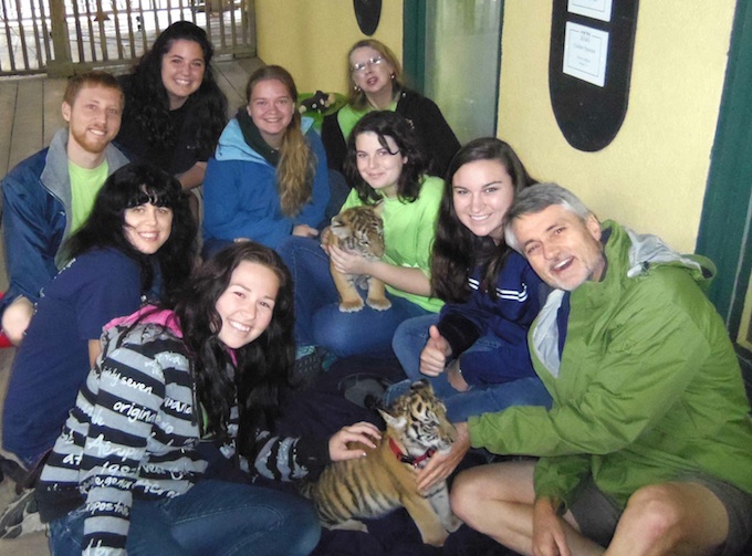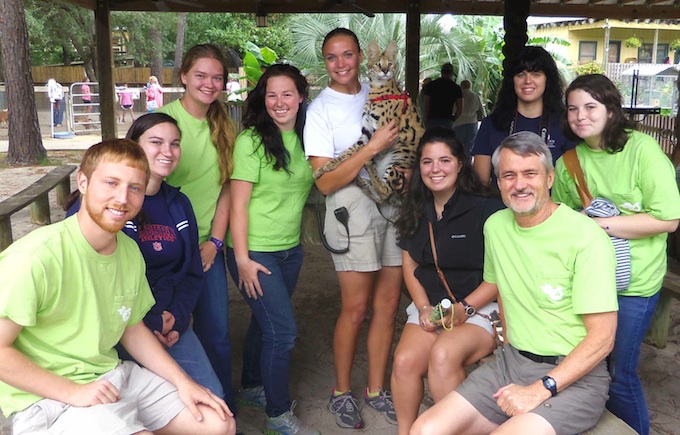 In a reprise of last year’s successful Gulf Coast Field Trip, 7 SCB members traveled to the Gulf Shores area Oct. 18-20. Leaving in the late afternoon on Friday, we spent the night in The Nature Conservancy’s Splinter Hill Bog house in South Alabama. On Saturday morning, we drove to Gulf Shores to visit the Gulf Coast Zoo, hosted by former AU student and SCB member Jessica Larson who now works at the zoo as a keeper. We enjoyed the zoo’s animal show, the lemur encounter and a behind-the-scenes tour by Jessica, including a spectacular opportunity to play with two seven-week-old tiger cubs. After lunch, we went to Bon Secour National Wildlife Refuge to see habitat of the endangered Alabama Beach Mouse. Our own Faculty Advisor (Dr. Bob Boyd) led this portion of the trip, and talked about a 5-year research project he and Dr. Mike Wooten conducted on beach mice and post-hurricane habitat restoration. We then went back to Splinter Hill for dinner. Sunday we toured the pitcher plant bogs at the Splinter Hill Reserve and collected some Exyra moth larvae and pitchers for research being conducted by Dr. Debbie Folkerts and her graduate student Allison Tjelmland. All in all, a very busy and productive field trip!