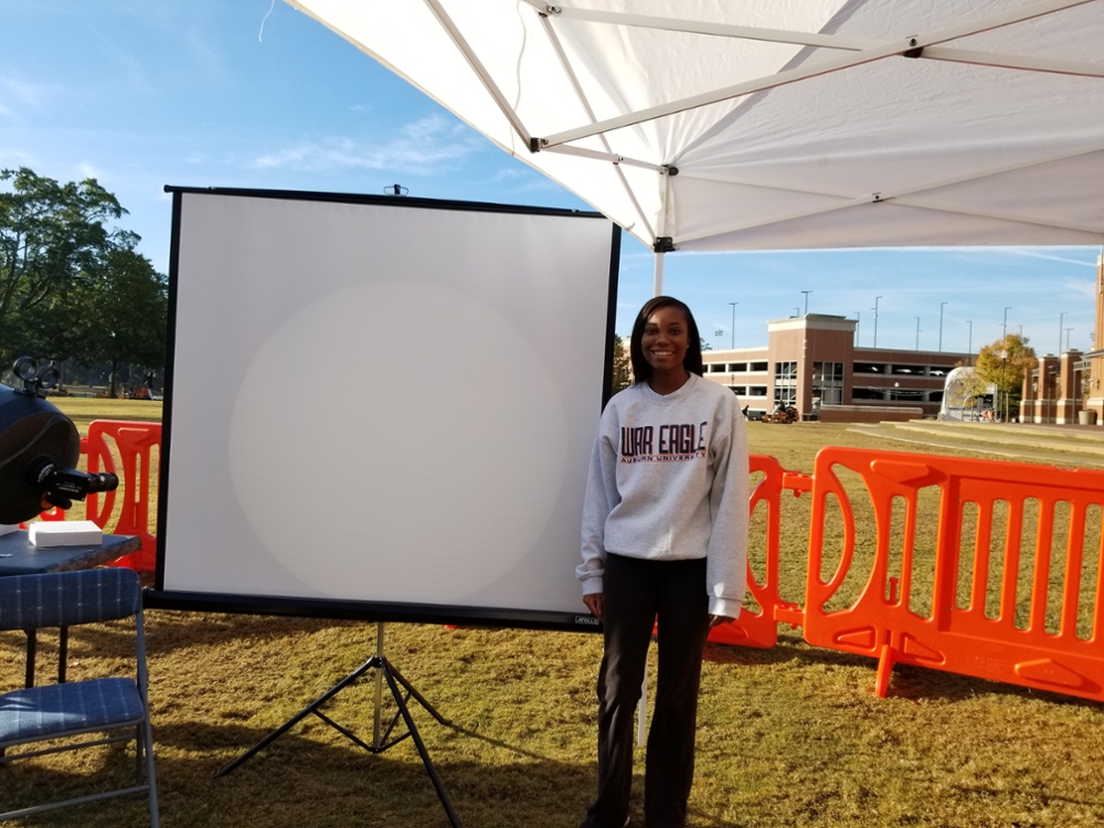 Doctoral students in chemistry, Yvette Kayirangwa, had to stop by the event. She took physics in high school and loves celestial events.