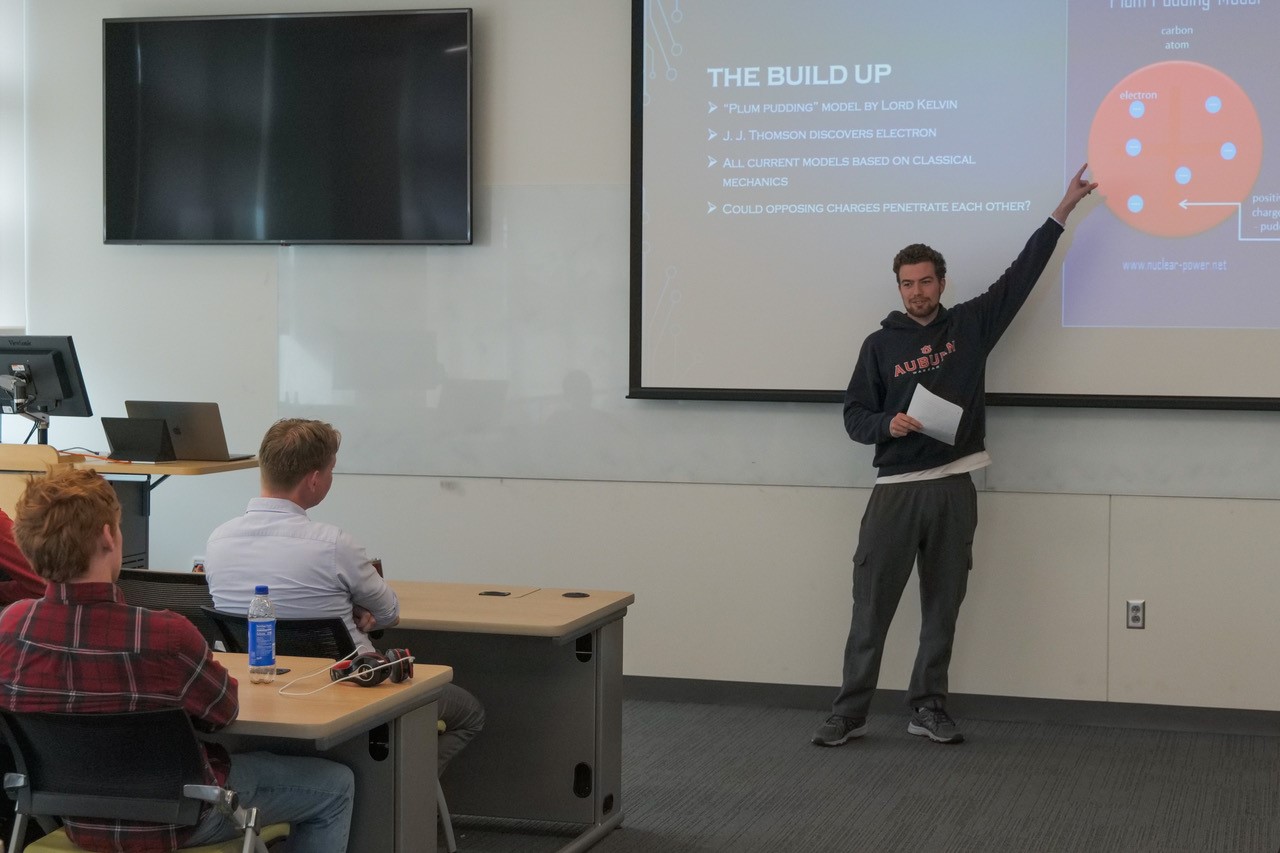 “To make my class more engaging, I gave students in Physics 6100, applications of quantum mechanics, an opportunity to present key experiments that lead to the discovery of quantum physics,” explained Dr. Dennis Bodewits, associate professor in the Department of Physics.