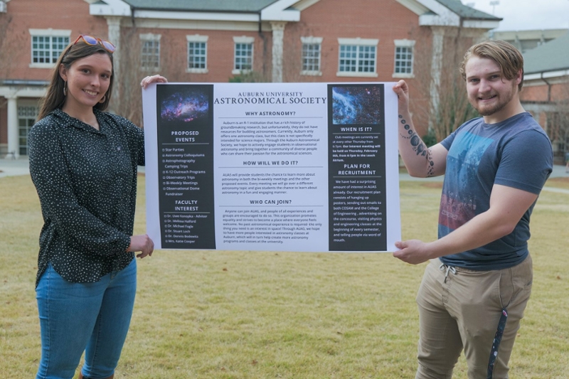 Auburn University students Rachel Fulda and Johannes Allen both share a passion for astronomy. Fulda, a freshman majoring in physics, and Allen, a junior double-majoring in physics and aerospace engineering, met through the Society of Physics Students and bonded over the idea to start an organization centered around space.