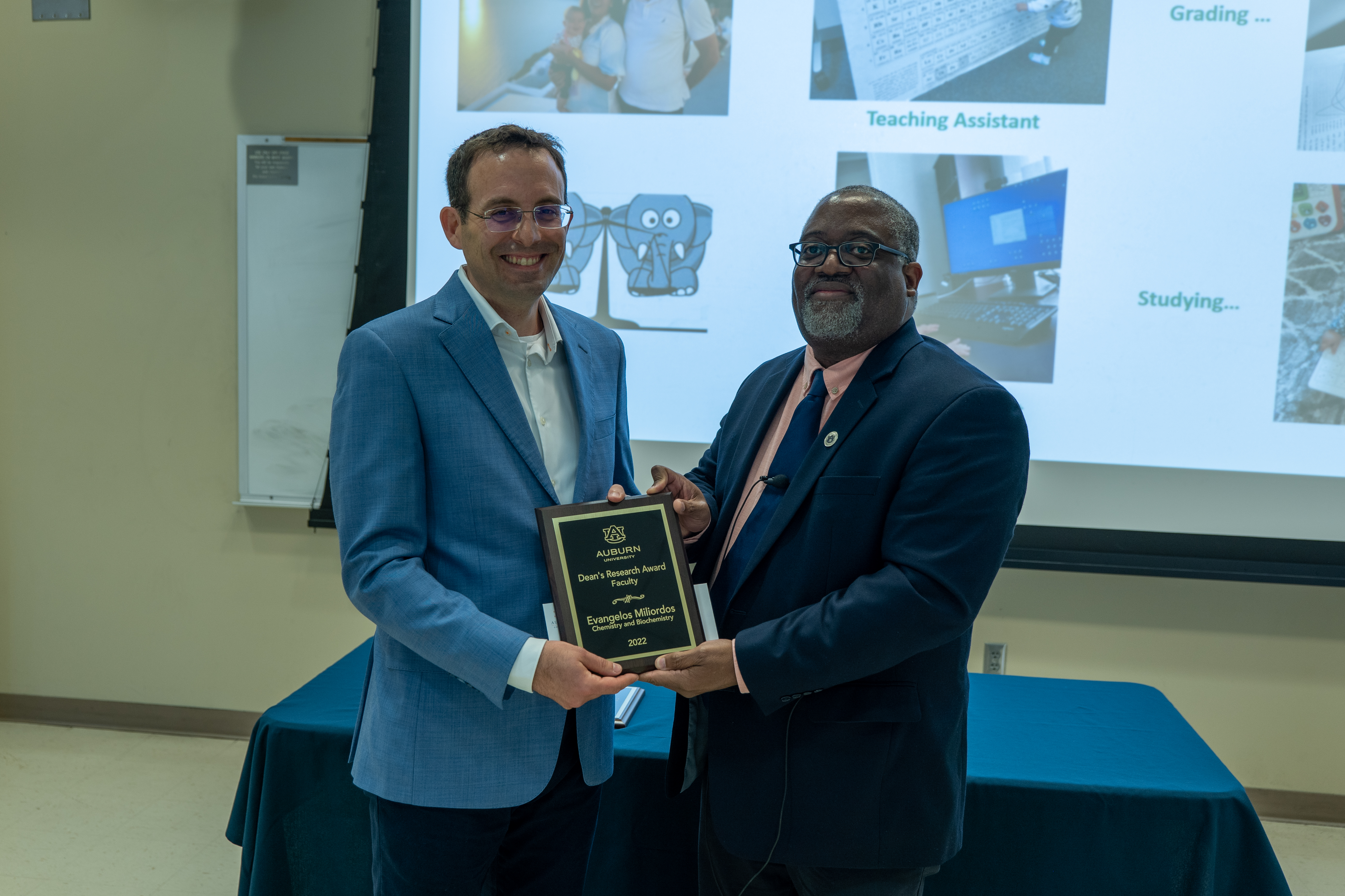 The event began with Interim Dean Ed Thomas presenting the COSAM Young Faculty Scholar Award to Konrad Patkowski, the S. D. and Karen H. Worley Professor in the Department of Chemistry and Biochemistry.