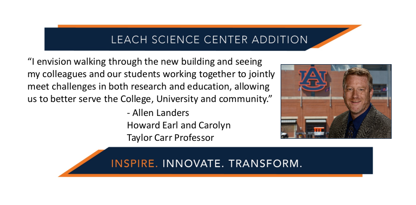 Dr. Landers is looking forward to being able to work with both faculty and students in the new Addition. “The new Leach facility will certainly enhance this culture, through its bright open spaces and multiple ‘collaboration areas’ that include group tables and glass boards,” he explained. “I envision walking through the new building and seeing my colleagues and our students working together to jointly meet challenges in both research and education, allowing us to better serve the College, University and community.” Find out more about how common goals are elevating research.