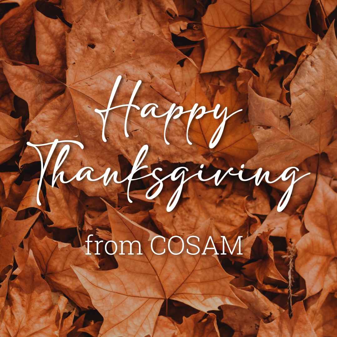 Happy Thanksgiving from COSAMHappy Thanksgiving to you and your family from COSAM. We wish you a safe and happy holiday. COSAM Today will return on Tuesday, December 1.