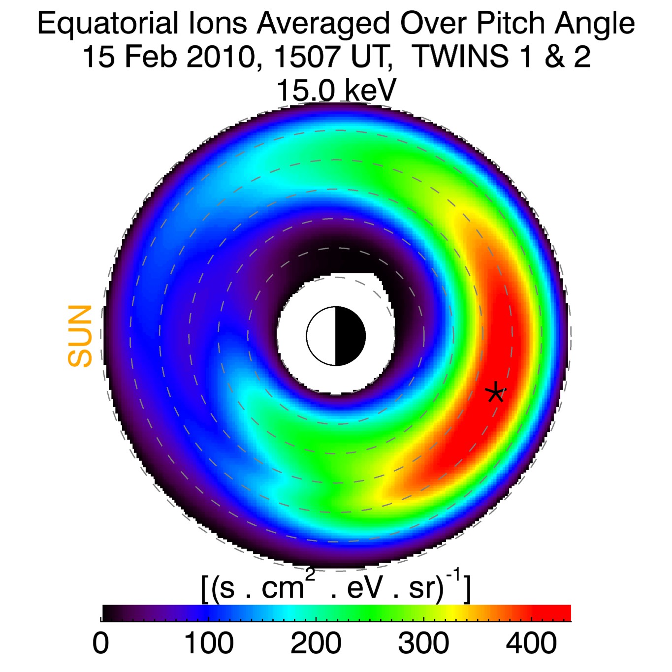 | TWINS ENA Images | Inverted H+ Flux and Pitch-Angle Distribution | ||