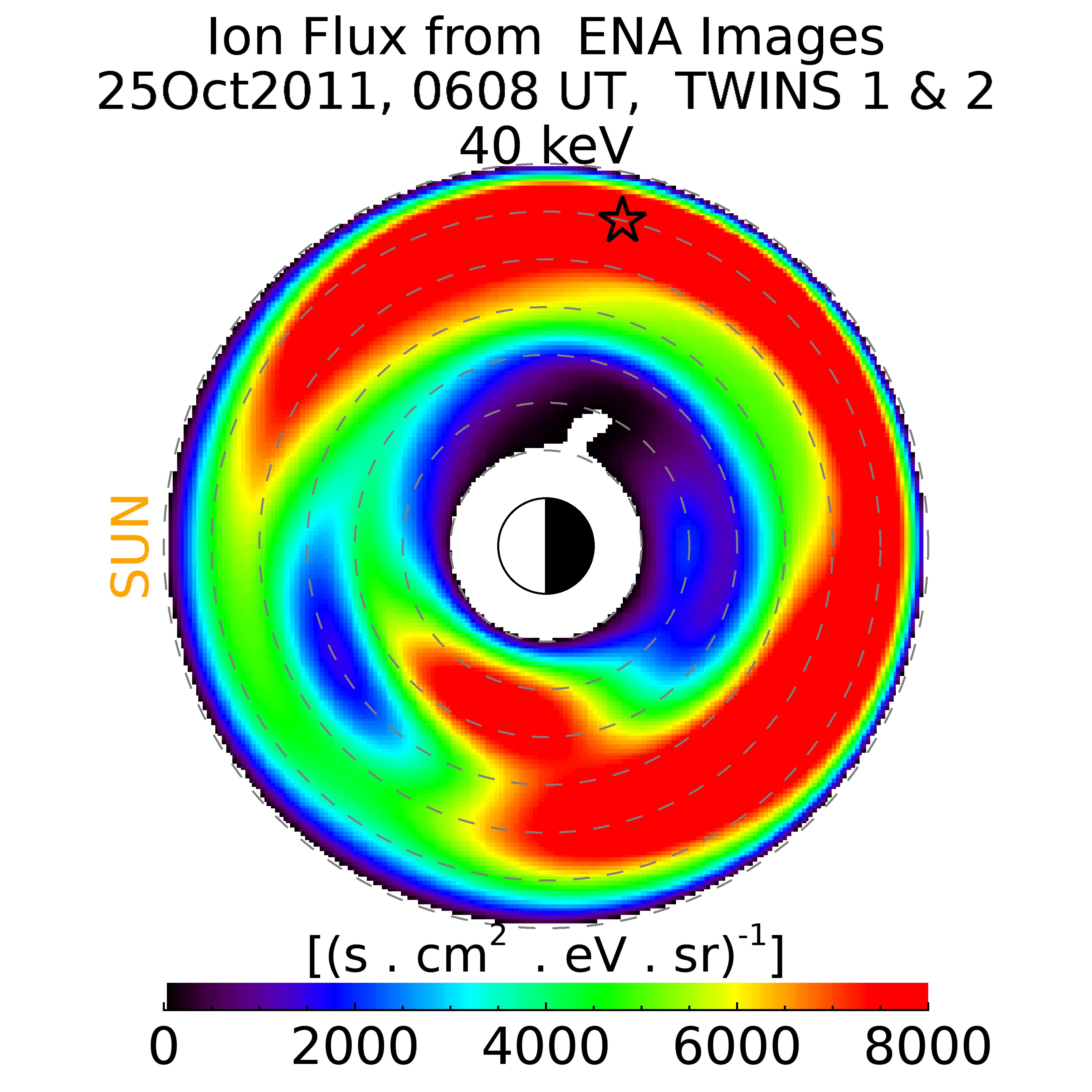 | TWINS ENA Images | Inverted H+ Flux and Pitch-Angle Distribution | ||